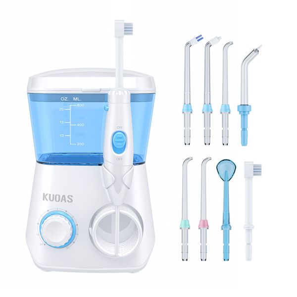 | Tank capacity: 600ml Flow rate: 290ml / min Certificate :CE,RoHS,FDA | Classic jet tip x3, Orthodontics tip x1, Dental plaque tip x1, Periodontal pocket tip x1, Tougue cleaner x1 Tooth brush headx1 | Net weight: 0.85kg Gross Weight: 0.96kg Product Size:140 x 125 x 200mm Color box size:155 x 135 x 215mm Quantity per carton: 12 pcs Carton gross weight: 12.6 kg Carton Size: 420 x 325 x 465mm Container Loading Quantity 20ft: 6552pcs 40ft: 13320pcs 40ft HQ: 15984pcs | 1. Electronic switch, intelligent handle, can freely control the water flow and switch 2. Various functional nozzles are used together to provide you with exclusive tooth cleaning solutions 3. Three-minute memory function, easier and safer |
